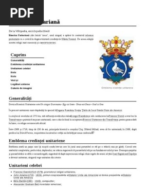 Mulţi au acceptat credinţa noua, chiar şi regele de atunci sigismund şi au devenit unitarieni. Duhul sfânt există, este puterea lui dumnezeu care lucrează în oameni, iar în unii lucrează în mod special. Iisus a fost un om deosebit, dar om; Identitatea unitariana este puternica din toate punctele de vedere, si noutatile care au aparut in viata si exprimarea ei, bazata pe aceasta... 10.09.2014 · din anul 1565 a început reformaţia unitariană, proclamând ca dumnezeu este unul singur, şi că fiecare om este liber să aleagă religia după propria credinţă.