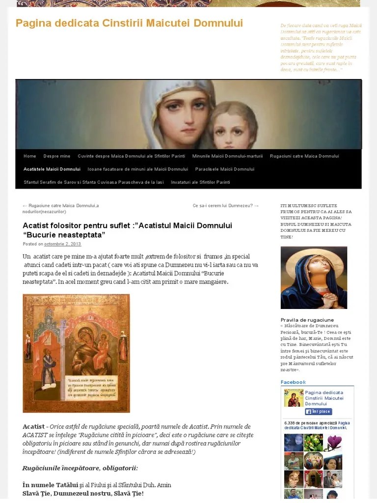 12.08.2015 · prohodul maicii domnului este o rugaciune cantata prin care noi cerem ajutor de la fecioara maria si dam marturie ca ea este maica vietii. O, preasfanta stapana, fecioara, de dumnezeu nascatoare, mantuieste si ocroteste pe. Fiti aproape de dumnezeu, fiti aproape unii de altii! 06.08.2009 · rugaciune catre maica domnului stăpâna mea preabinecuvântată, folositoarea neamului omenesc, scăparea şi mântuirea celor ce aleargă la tine !. "sufletul meu se simte sfarsit;